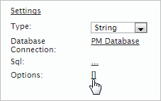 Finally, the "Options" setting shows, edits and/or adds options set of the control that may be related to a variable or not. Check this section for more information.