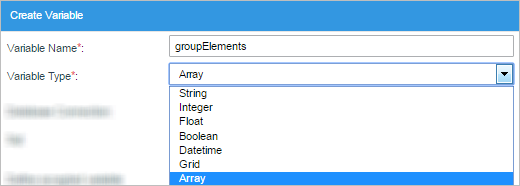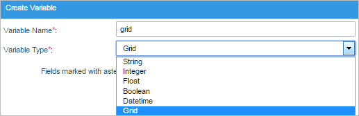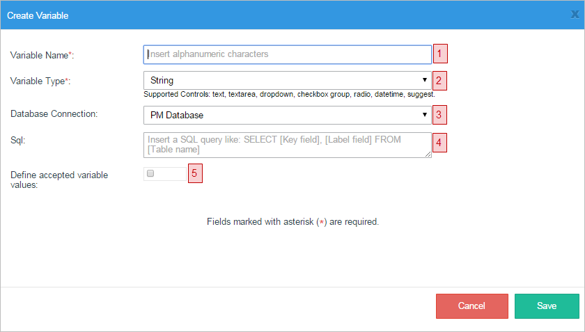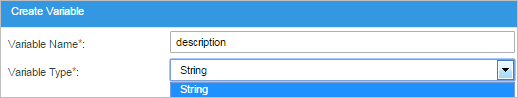 2. Variable Type: Required. Select the data type of the new variable. The data types supported by ProcessMaker version 3 are: