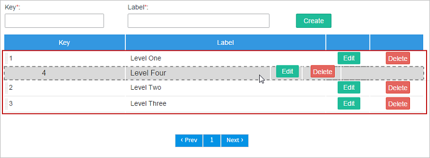 • c. Create. Click on this button to add a new option to the list.