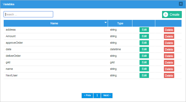 Variables can also be created inside the DynaForm Designer, from version 3.0.1.7 and above when dragging and dropping a control a new window will automatically appear.This window will be the "Create/Select" window and it has been added to aggregate functionality and behavior to the variables.