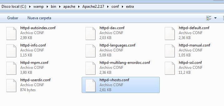 The next step is to add the ProcessMaker location to Apache Vhosts configuration. Open c:/wamp/bin/apache/Apache.X.v.v/conf/extra/httpd-vhosts.conf and add the following at the bottom of the file: