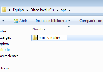 After downloading the most recent ProcessMaker tarball from ProcessMaker distribution page. Move the extracted folder to: c:/opt/processmaker and keep note of this location.