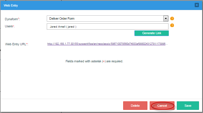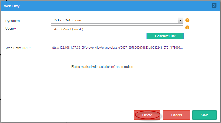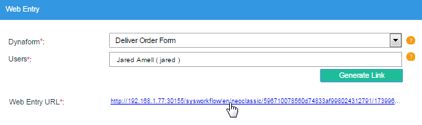Generate the Web Entry by clicking on the button marked as "Generate Link". This link can be used to access the Dynaform added in the Start Event.