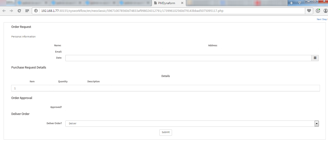 The Dynaform is opened in a new tab in the browser. Fill the form with the information asked and submit the form or close the tab.