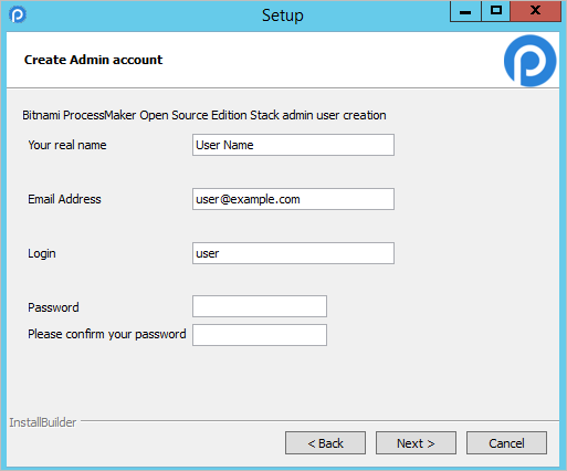 Important! The “admin” user will be able to access to all the features and functionality in your ProcessMaker installation, such as: system configuration, processes creation and editing, user and group management, case management, and report and dashboard oversight among others. Thus, it is strongly recommended you take care to configure a difficult-to-guess password for this account. Take a look at this list of password dos and don’ts. You may also consider using a strong password generator like this one.