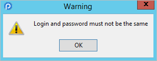 • Password: A string of at least 5 characters, which can include spaces and symbols. Take into consideration that the Login Username and the Password can not be the same.