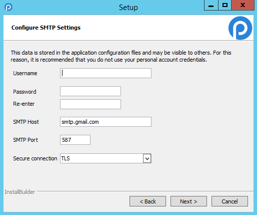 • SMPT Port: The port number used by the email server. Generally port 25 is used, or alternatively port 587. If connecting to the email server with a SSL or TLS connection, generally port 465 is used. If left blank, the default port 25 will be used.