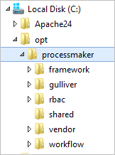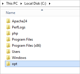 Create the folder where ProcessMaker will be installed. For example, create a folder named "opt" on the disk
