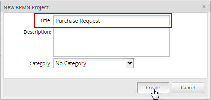 Enter a name and a brief description of the project in the window that opens. For this example, set the title of the project to "Purchase Request" and click on Create.