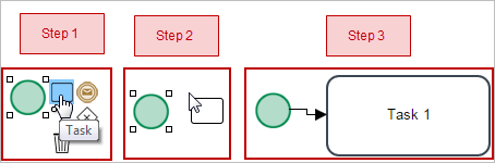 Drag the flow to the task. Notice that the task is highlighted in the color green, which means that the connection is valid according to BPMN (if the connection is not valid, it will be highlighted in red).