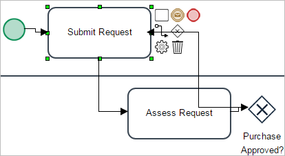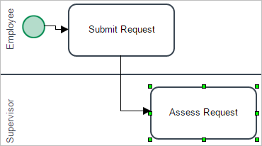 Create the second task using the Quick Toolbar of the "Submit Request" task. Place it in the "Supervisor" lane and name it "Assess Request".