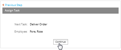 Since this is the last task of the process, the message "End of process” will be displayed, along with the name of the last employee assigned to the case.