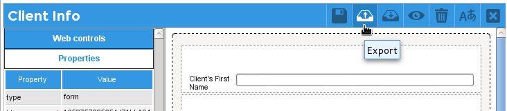 To edit a Dynaform, first export it. Open the Dynaform to edit it, and then click on the button in the toolbar to export the Dynaform.