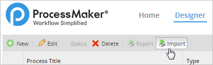 4. The .bpmn extension allows the user to import the diagram into a different installation/workspace. To do so, click on the Import button in the designer (in a different ProcessMaker installation/workspace).