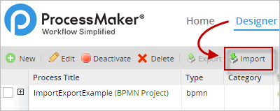 • Use the same option to import either .pm, .pmx, or .bpmn files inside ProcessMaker 3.0.