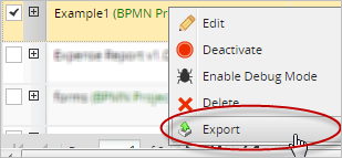 • A process can be also exported by right clicking on the process and selecting the Export option as seen in the image below.