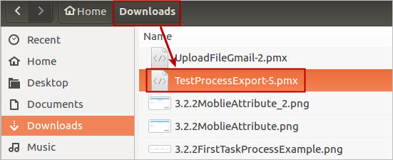 • The exported process will automatically be downloaded to the user’s computer. Usually the downloaded file will be located in the Downloads folder unless the user has customized the browser downloads.