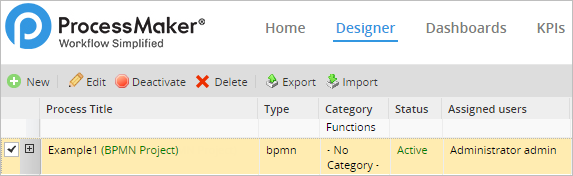 • Files belonging to the old ProcessMaker designer have the .pm extension, while files from the new BPMN designer have the .pmx extension.