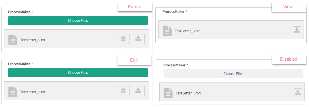 Files in ProcessMaker 3 have the following field components: