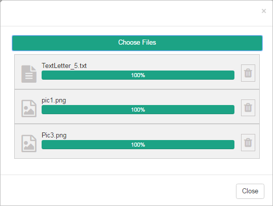 Click on the Choose Files button to upload multiple files. To edit a file, just delete it and upload it again. Once done uploading files, close the dialog.