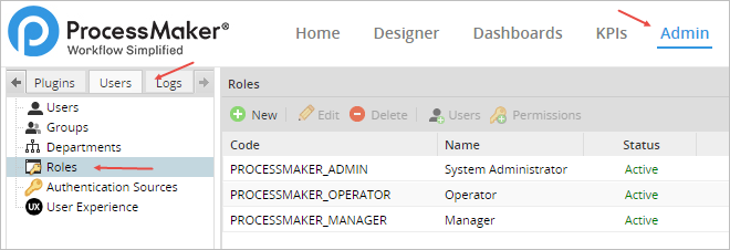 Note: If a role is set as INACTIVE, and a user is assigned to that role, the user can NOT log in to ProcessMaker until the role is changed to ACTIVE