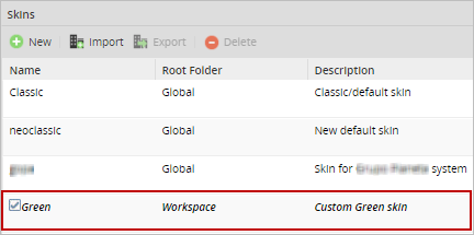 • Current workspace: The skin will be available ONLY for the current workspace in use.