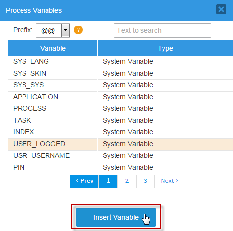 After selecting a variable click on “Insert Variable” to close this window and add the chosen variables.