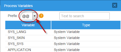 Use the [@@] button to select variables from the master process.