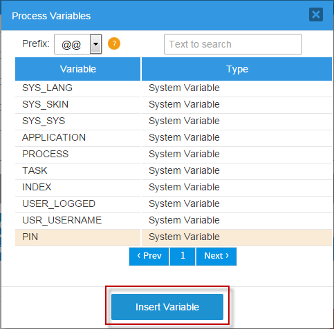 After selecting a variable click on “Insert Variable” to close this window.