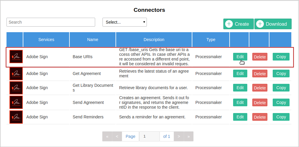 5. All the available connectors for the Adobe Sign service display in the same screen.