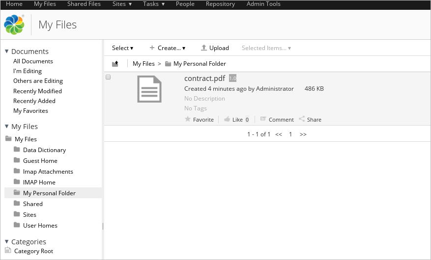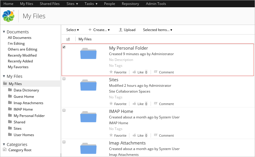 Now log in to your Alfresco server with your account and verify that the folder has been created.