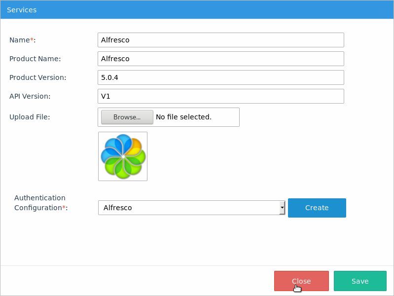 Content-Type: application/jsonEnsure that the Services and the Authentication Configuration field is "Alfresco".