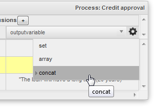 | Once the source code is modified, it is no longer possible to use the graphical decision table for the rule set. The rule set's source must be manually edited afterwards. |