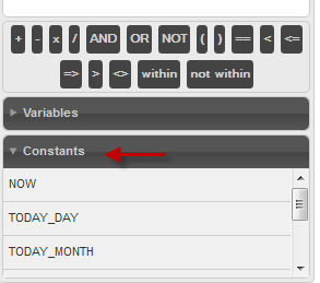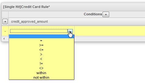 Then, select the comparison operator used in the condition. To select the operator for the condition, click on the first column of the condition: