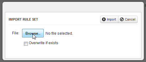 The file will be saved with the Import button to select the rule set file to import: