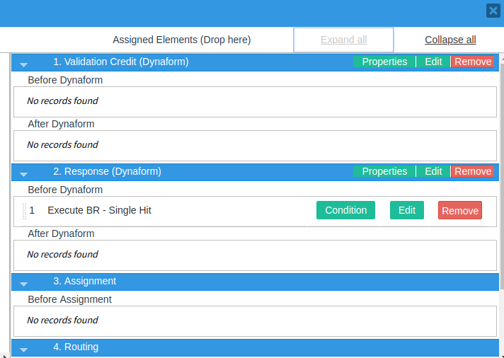 The Business Rules plugin helps process designers to define business logic rule sets and share them among cases. These rules are defined for each process by using a graphical interface that requires no coding, making rule definition easy to do. The rule sets are executed by a trigger.