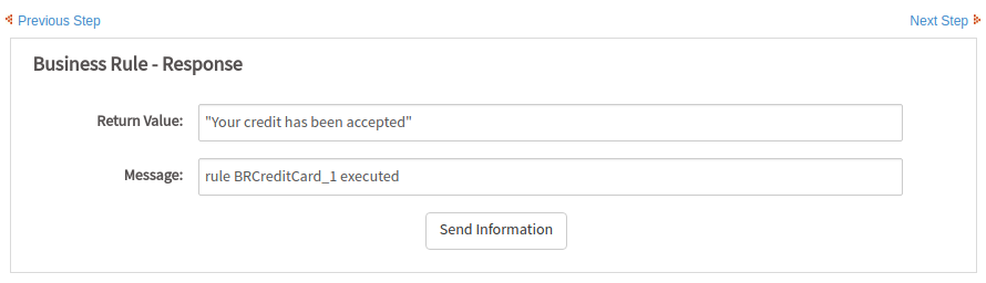 In this example, the return value contains the message "Your credit has been accepted".
