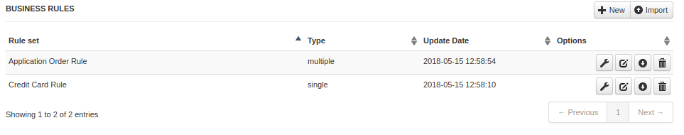 - Delete Rule: Deletes the selected business rule set.