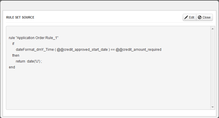 - Edit Rule Set Source: Edit the rule set source generated when the business rule is created.