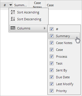 - Case Title: The title of the case, which by default is the case number preceded by # (the pound sign). The Case Title can be customized in the properties of each task of a process.