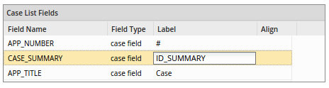 • Complete all system fields, with the ID of the label for its translation: Adds any system fields that were removed to the end of the Case List Fields list and restores the labels of those system fields. Each System Field label will show the ID of the label for its translation.