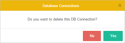 Delete: Click to delete the connection. A window will appear to confirm the deletion. Click Yes to close the window and return to the list of databases. Click No to delete the connection, and a flash message confirming the deletion will be shown at the top of the window.