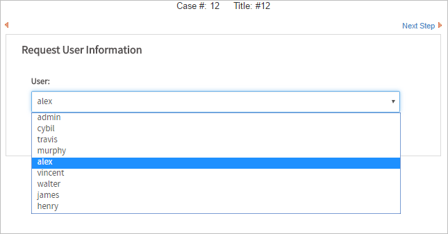 Create a new Dynaform and add a dropdown control to display the names of the users. In the Create / Select Variable dialog, create a different variable.