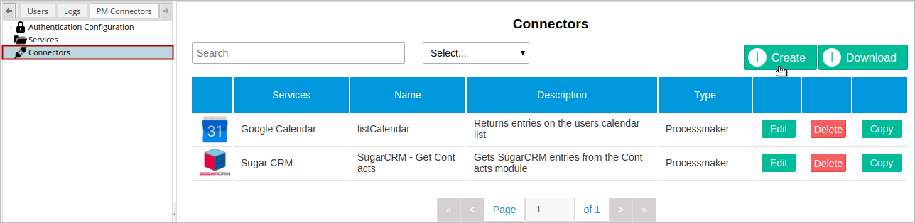 After setting these configurations (Authentication Configuration and Services), any ProcessMaker endpoint can be used by creating a connector.