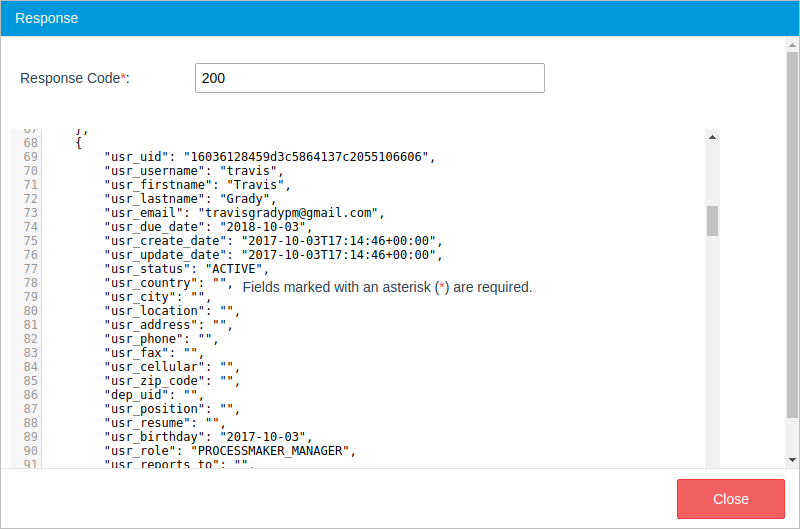 • username: The username of a ProcessMaker user, which is case insensitive.