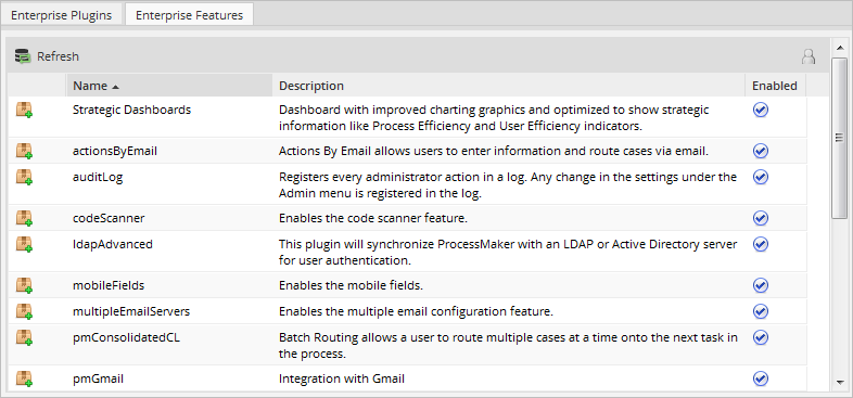 For more information about these features, see the ProcessMaker Enterprise Edition documentation.