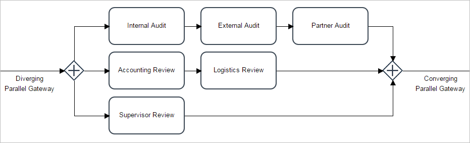 For example, when a flow is divided with a Parallel Gateway, the resulting parallel flow should be consolidated via another Parallel Gateway when required.