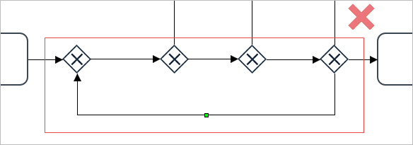 For gateways, the following combinations are not supported in the execution of processes for gateways: