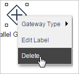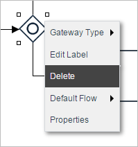 To delete an inclusive gateway from the Process Map, right click to access the gateway context menu and select the option Delete.
