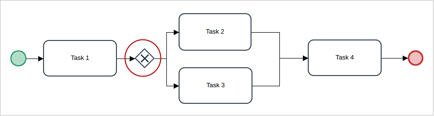 Exclusive gateways are used to select only one path between two or more tasks within a process workflow. The decision of which path the flow will take is based on the evaluation of conditions that define a unique outcome flow.